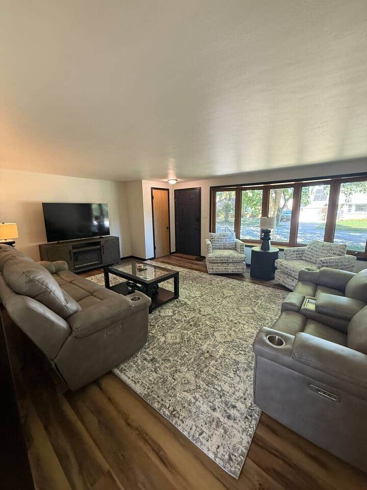 This three-bedroom Ranch is situated within walking distance of Lambeau Field, making it ideal for unforgettable game-day gatherings and year-round enjoyment. Enjoy an open living room, dining area, and new kitchen with modern finishes. Bedrooms have Queen Beds and ample closets. One bedroom features a dedicated workspace with a desk, monitor, and 1GB Wi-Fi. Relax in the billiards room or grill on the patio. Perfect for game days and year-round living
